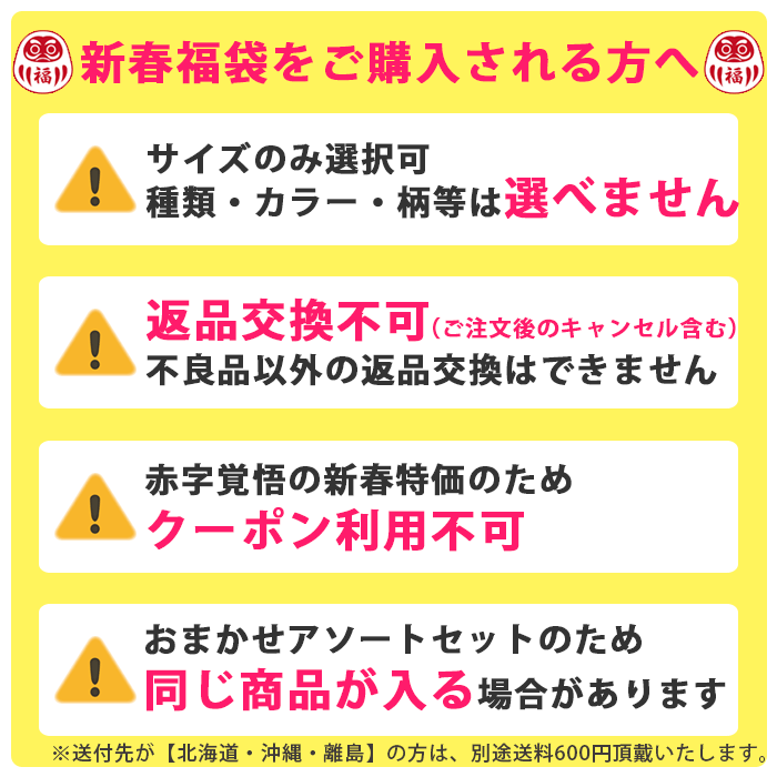 限定福袋のため、キャンセル、カラー希望やサイズ変更は承れません。